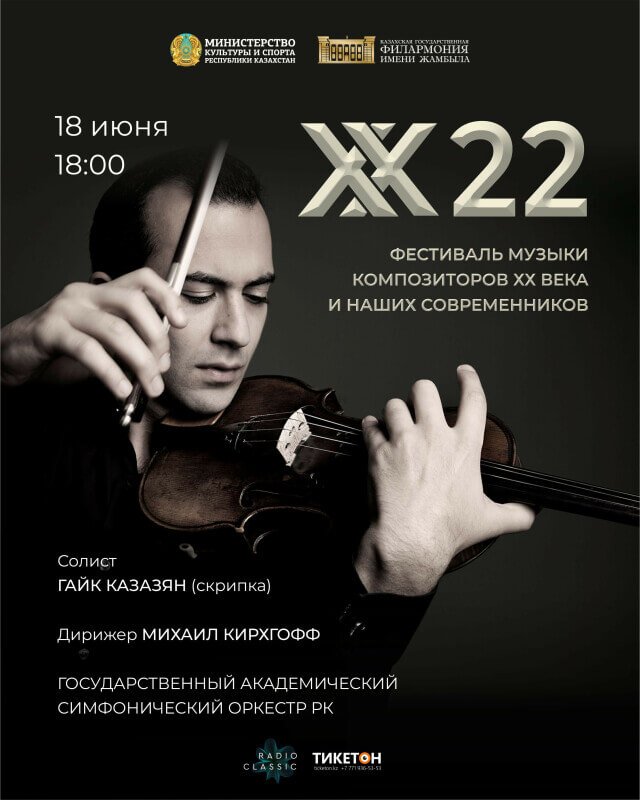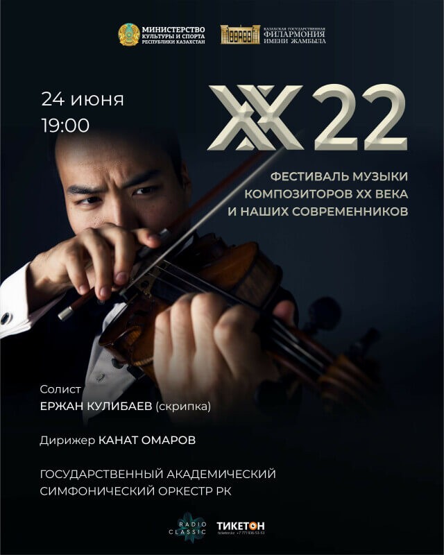 Первый музыкальный «ХХ22» фестиваль музыки композиторов ХХ века и наших современников в казахской государственной филармонии им. Жамбыла. На фестивале прозвучат произведения современных композиторов ХХ века по хронологической последовательности. От любимых произведений до интригующих премьер — каждый найдет что-то для себя.